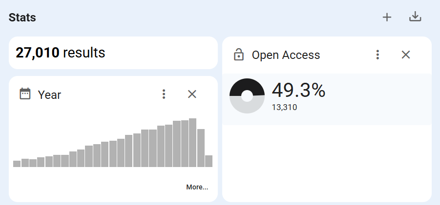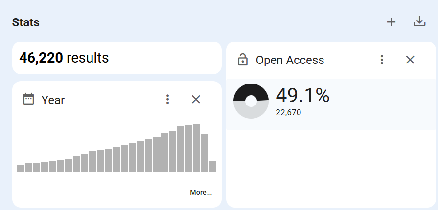 Ef Ísland er skoðað í heildina inni í gagnagrunninum koma fram rúmlega 46 þúsund niðurstöður. Af þeim eru 49.1% í einhverskonar opnum aðgangi. Ef við skoðum hins vegar aðeins ár fyrir ár kemur í ljós að árið 2023 var um 72% allra greina sem tengjast Íslandi í opnum aðgangi.